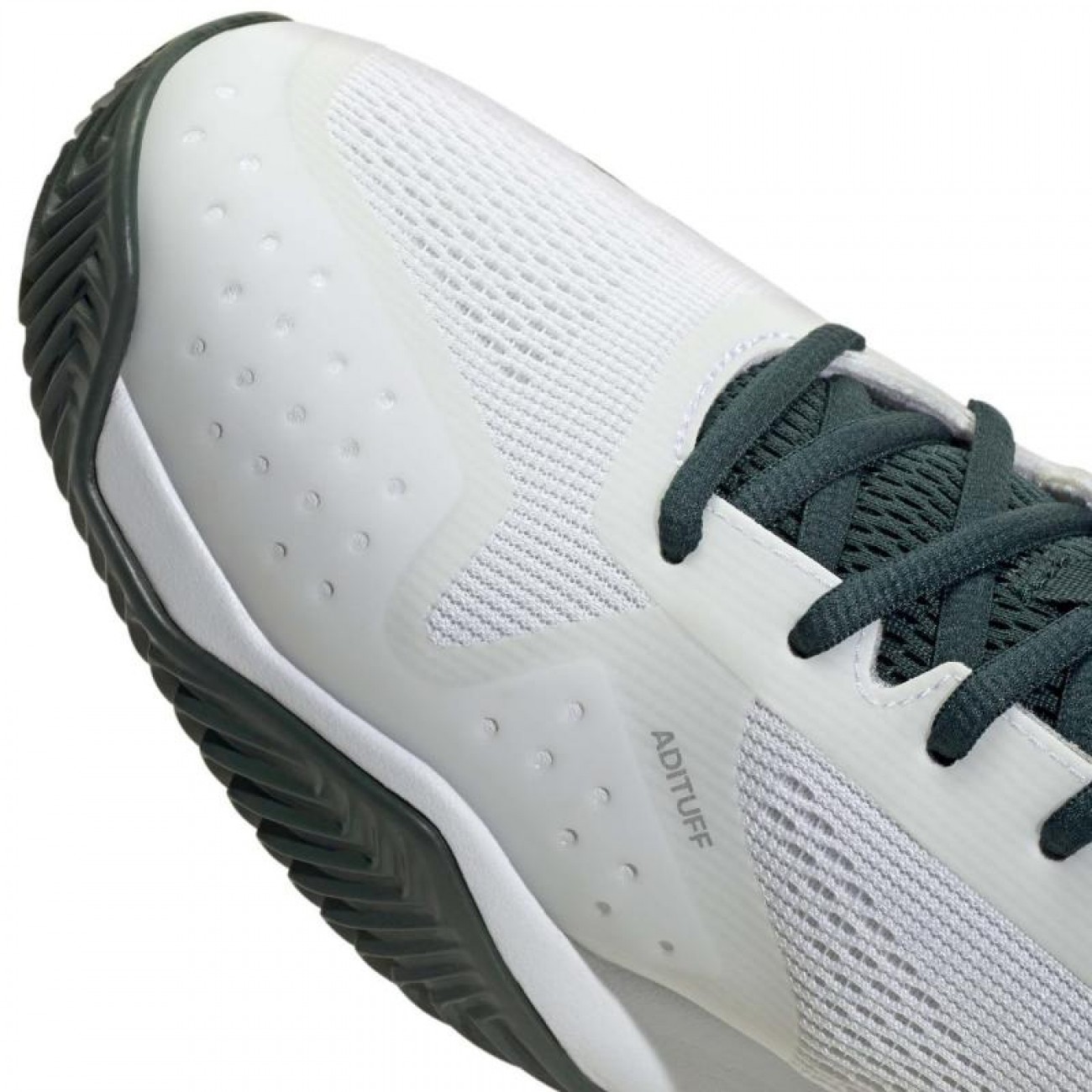 El refuerzo Adituff resistente a la abrasión protege las zonas clave del pie frente al desgaste por arrastre, para que puedas deslizarte y reaccionar con confianza punto tras punto.