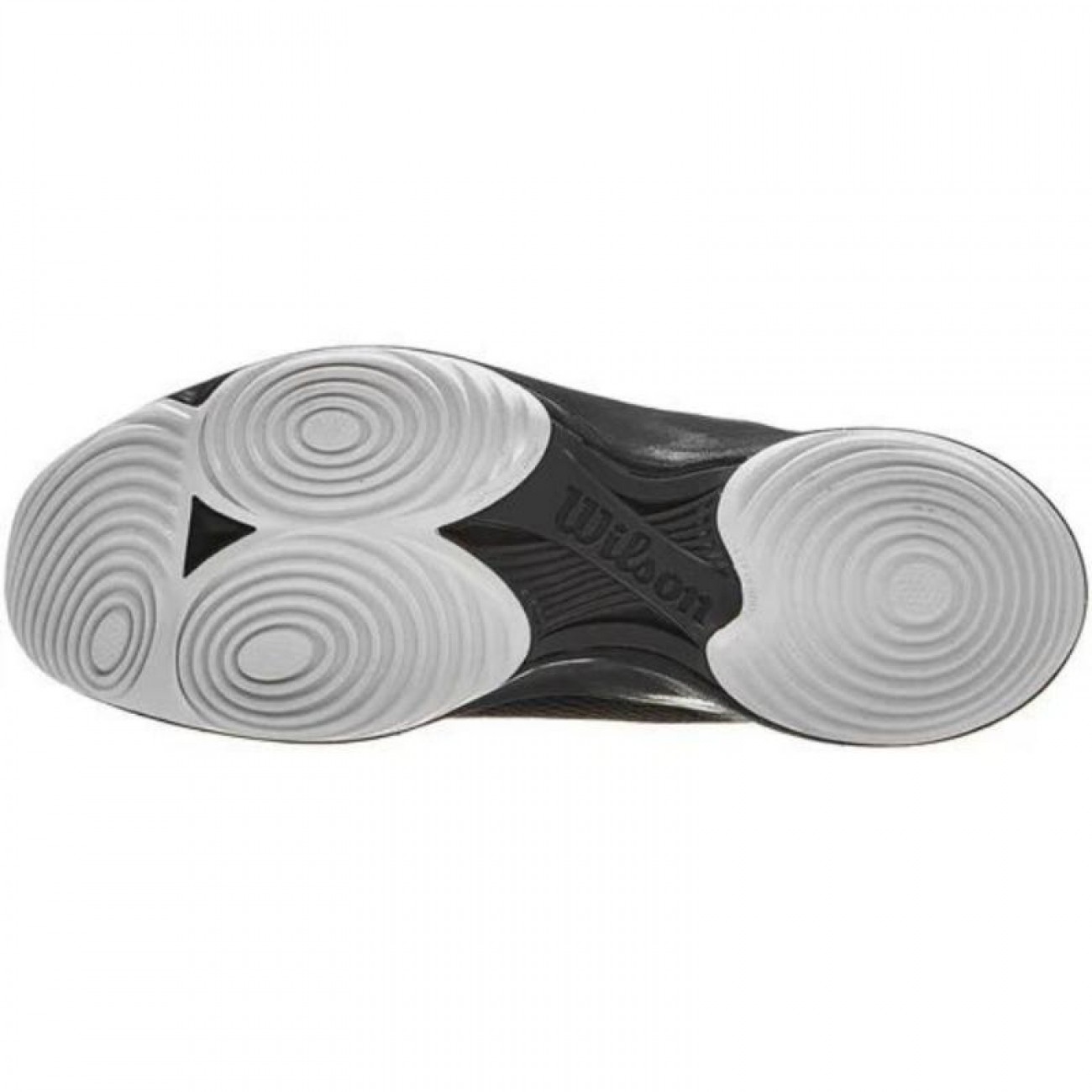 Suela diseñada biomecánicamente con diseños de vórtice en el antepié y el talón para optimizar la rotación y el movimiento de pivote en todas las direcciones en la pista de pádel.